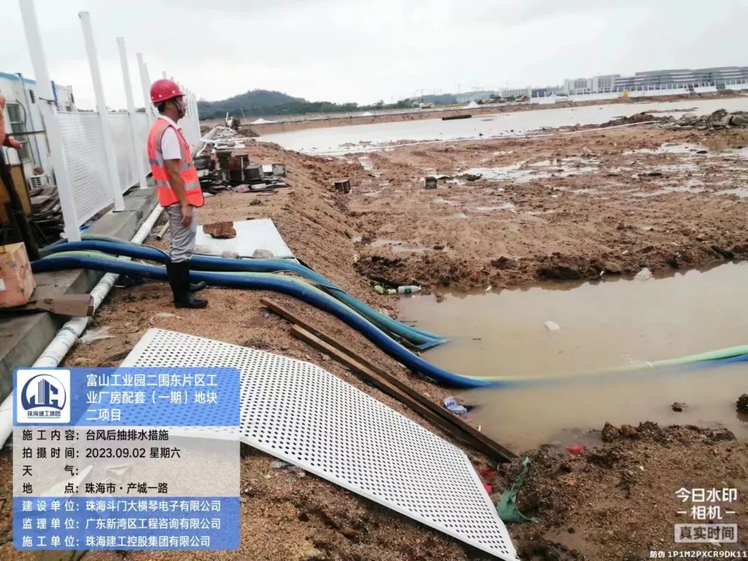 在斗門大橫琴5.0產(chǎn)業(yè)新空間萬鋰新材料(一期)項目現(xiàn)場,開展了臺風(fēng)后復(fù)工復(fù)產(chǎn)安全大檢查,現(xiàn)場組織排水、圍擋修復(fù)各項工作。