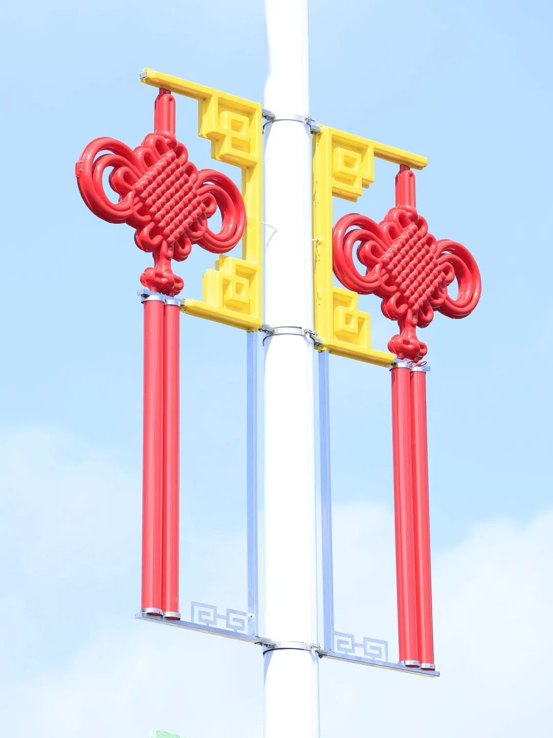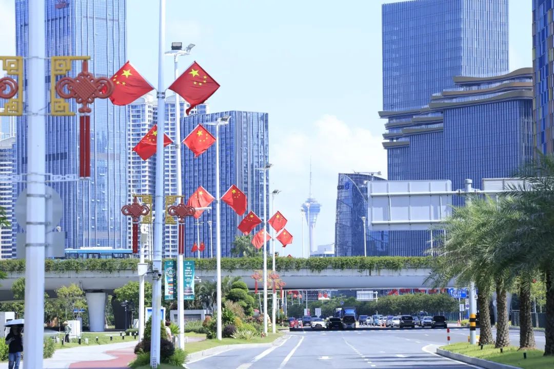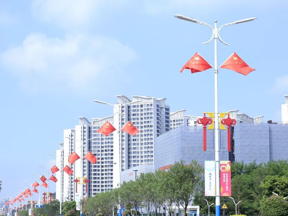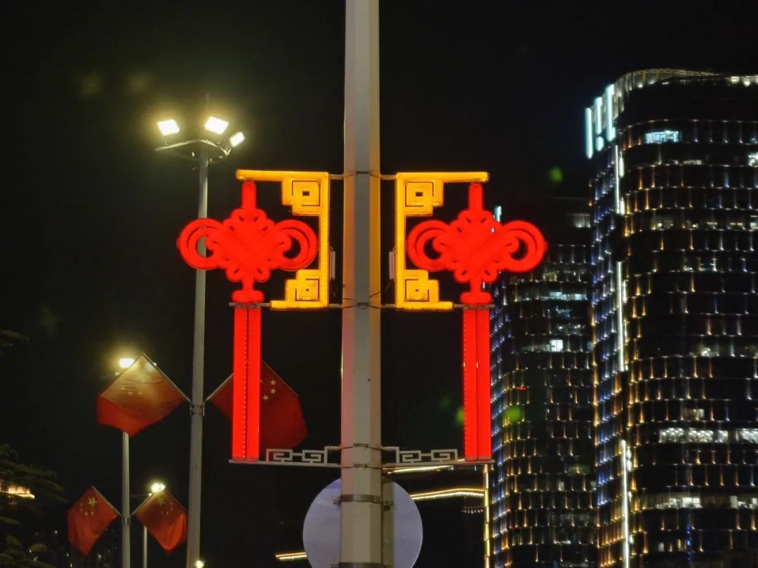 大橫琴城資在港澳大道、環(huán)島西路等重點路段懸掛了 230套中國結(jié),以亮麗的形象喜迎國慶。