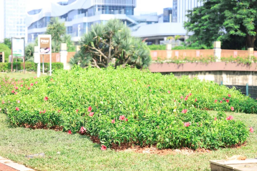 針對港澳大道南側(cè)交藝文二道東側(cè)(隆義廣場段)周邊的3處綠地存在的雜草繁盛,草皮長勢不佳,垂榕綠籬缺株,現(xiàn)場電箱及水閥等設(shè)施裸露、缺乏遮擋等現(xiàn)象,開展總面積約1655㎡的綠化改造。