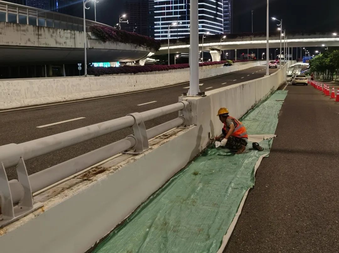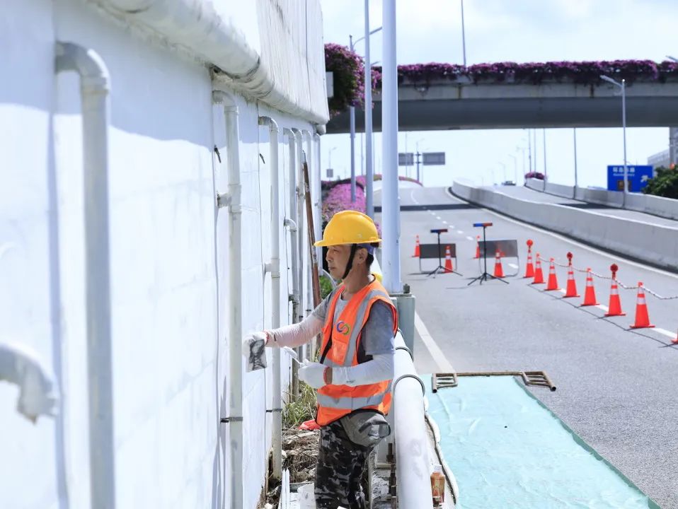 道路、橋梁作為基礎(chǔ)交通設(shè)施,也是城市景觀的重要組成部分。為打造靚麗舒適的出行環(huán)境,大橫琴城資在港澳大道立交主線橋及匝道、濠江路立交主線橋及匝道進(jìn)行防撞墻和引橋擋墻的打磨、找平、刷漆等養(yǎng)護(hù)作業(yè),施工面積達(dá)20000㎡,在美化通行環(huán)境、提升路容路貌的同時,切實消除安全隱患,提升了道路通行安全系數(shù)。